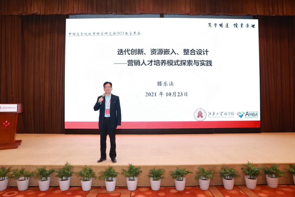 2021年10月22日-24日,“中国高等院校市场学研究会2021教学年会暨营销学科发展论坛”于北京香山成功召开。中国高等院校市场学研究会副会长、新葡萄8883国际官网质量品牌研究院执行院长、江苏高校哲学社会科学重点研究基地“品牌战略与管理创新研究基地”首席专家滕乐法教授受邀出席论坛,在开幕式上发表题为《资源嵌入,整合设计——营销人才培养模式探索与实践》的主题演讲,并在此次论坛中带领团队获得“优秀教学成果一等奖”。
