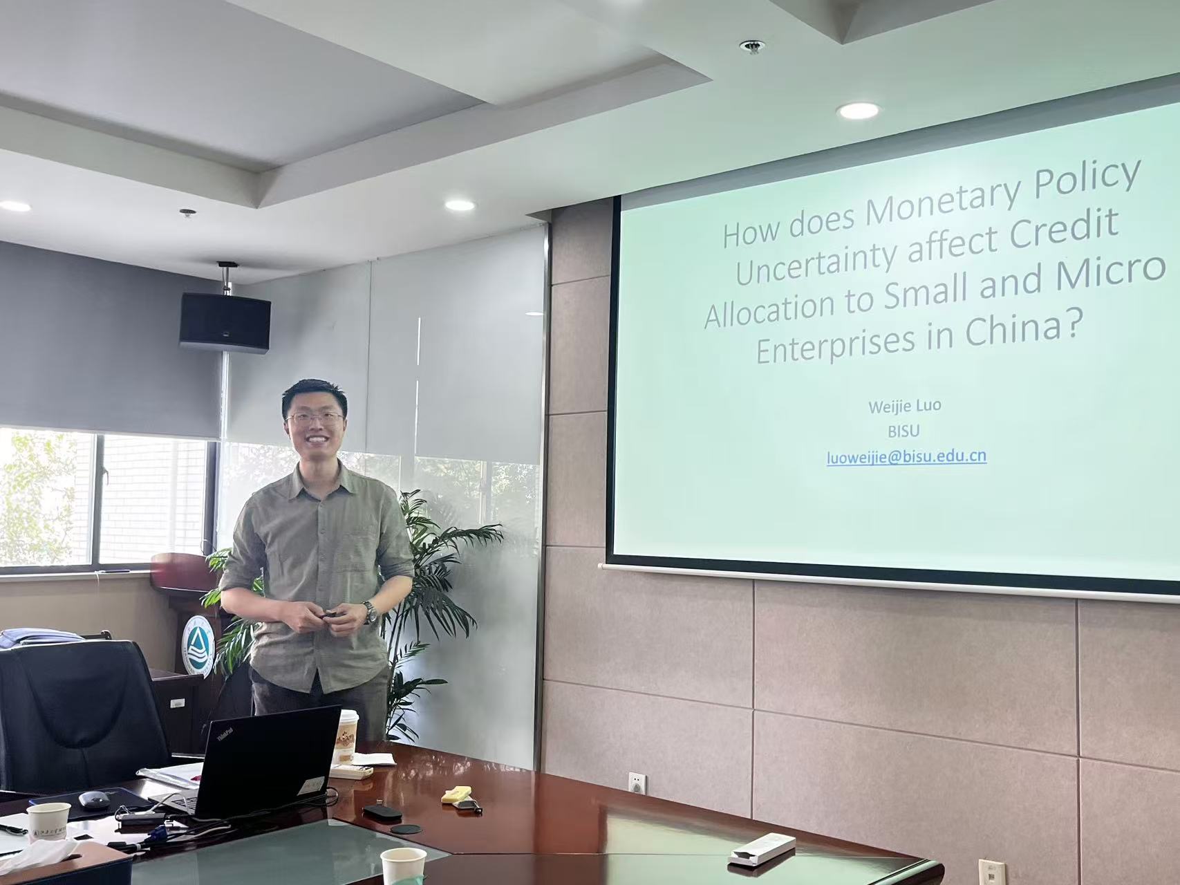 近日,“青年博士学术工作坊”第十三期在新葡萄8883国际官网304报告厅举行。英国约克大学经济学博士,英国剑桥大学访问学者,北京第二外国语学院副教授、硕士生导师罗伟杰老师应邀作题为“货币政策不确定性如何影响中国小微企业的信贷资源配置”的学术讲座。本次讲座由新葡萄8883国际官网教师张雪梅博士主持,会计系和金融系师生共15人参加。