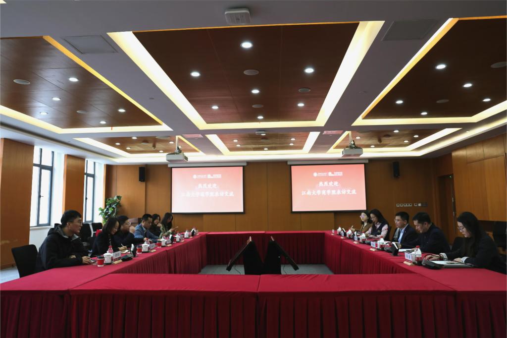 2月27日,新葡萄8883国际官网党委书记刘长青、院长浦徐进、党委副书记兼副院长孙小芳、办公室主任徐昉等一行6人赴上海交通大学安泰经济与管理学院以及百胜中国开展建院40周年筹备调研暨访企拓岗专项行动。