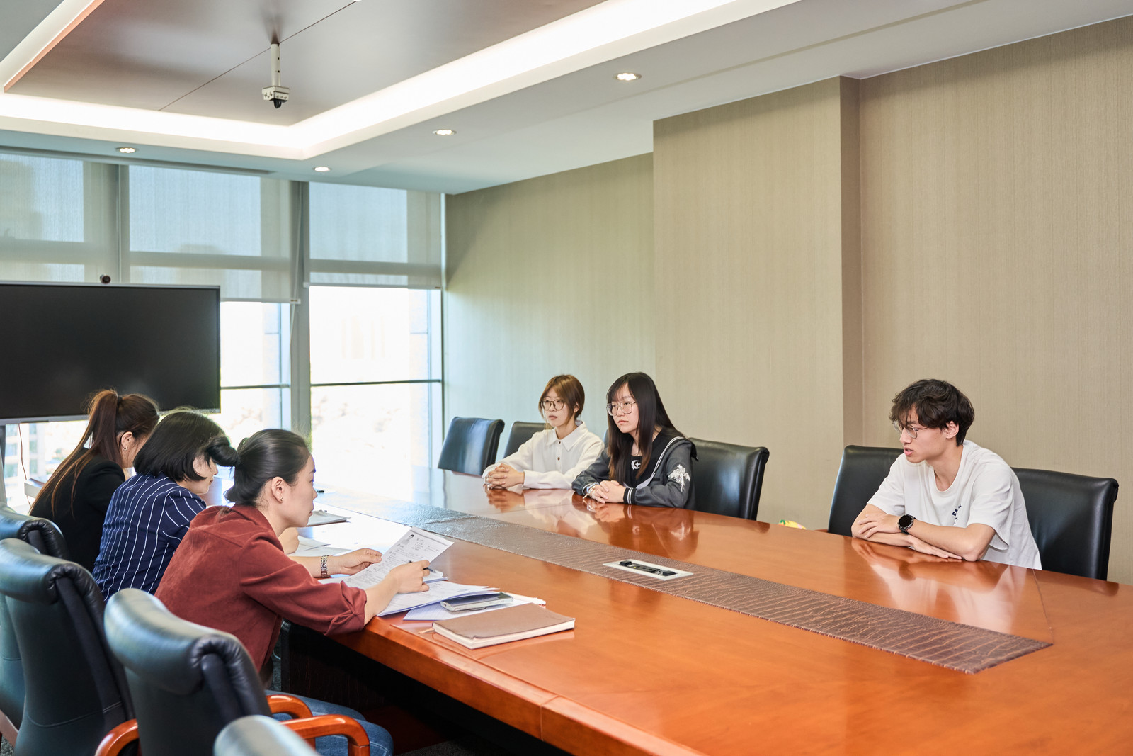 活动伊始,国联民生证券工作人员带领师生代表们参观了企业文化展厅,详细介绍了国联民生证券的历史沿革、业务发展、企业愿景与文化等重要内容。随后,双方开展了访企拓岗促就业座谈会。工作人员向师生们详细讲解了证券行业的现状、用人形势,并在行业知识、实习就业等方面为同学们答疑解惑。同时,国联民生证券无锡分公司运营管理部总经理袁征带领部门,面向新葡萄8883国际官网2025届9名毕业生,开展了半结构化形式面试,并就求职目标、未来规划、人岗匹配等问题,向毕业生代表们提出建议。