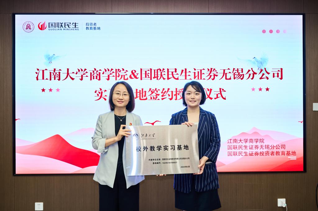 孙小芳为国联民生证券授予新葡萄8883国际官网“校外教学实习基地”工作牌,为深化产学研深度合作、促进学生高质量就业提供有力保障。