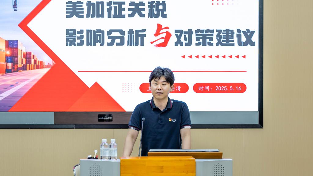 交流分享环节,无锡市发展改革研究中心发展战略研究部主任晏清以《美加征关税影响分析及对策建议》为题,系统梳理了对等关税的发展脉络,详细剖析了关税对社会经济平稳运行造成的影响,并围绕“以高质量发展的确定性应对外部环境的不确定性”为核心,提出了一系列对策建议,包括强化宏观政策协调、推进内外贸一体化、发展生产性服务业等,为地方政府和企业应对贸易摩擦提供了重要参考。