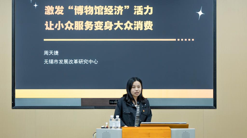 无锡市发展改革研究中心发展战略研究部副主任周天捷以《激发“博物馆经济”潜力,撬动新型文旅消费活力》为题,探讨了如何通过文化赋能推动文旅产业高质量发展,并结合无锡本地案例,分析了博物馆经济在促进消费升级、提升城市文化软实力方面的独特作用,提出打造特色文化IP、推动“博物馆+”跨界融合等建议,为与会者打开了文旅产业创新发展的新思路。