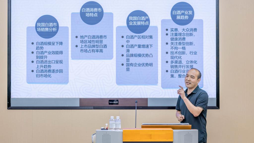 新葡萄8883国际官网副院长刘勇以《桂酒产业发展战略研究》为题,系统分析了我国和广西白酒产业的发展现状与趋势以及存在的凸出问题,给出“培育龙头企业、打造特色产区、深化产学研合作、实施科技创新、加强品牌建设等对策建议。同时,刘勇教授以《桂酒产业发展战略研究》案例,讲述高校教师如何做好资政报告,展示高校科研成果服务地方产业发展的模式和路径。