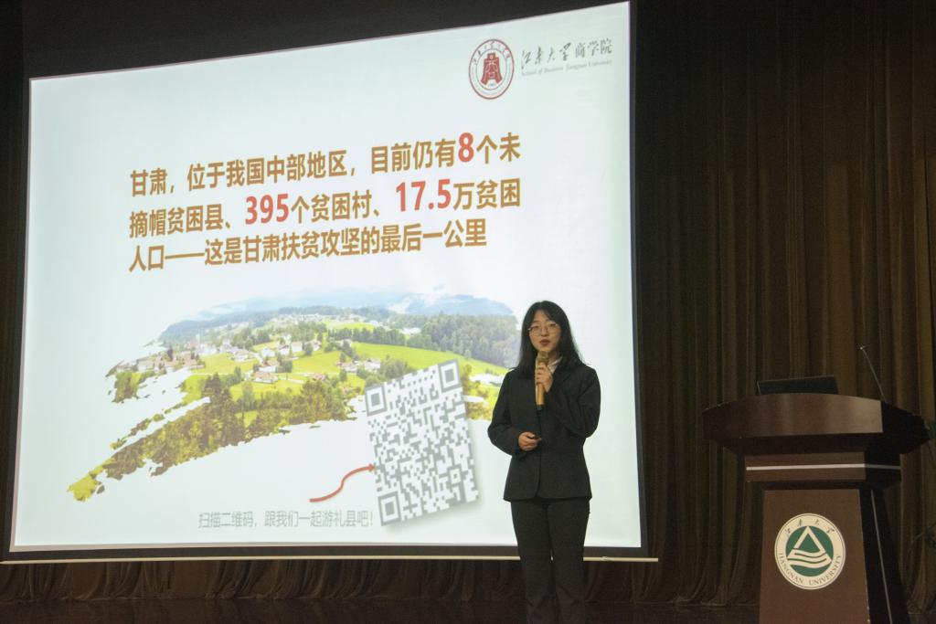 活动中,“志青春,与国同行”扶贫专题调研团汇报了团队社会实践活动的开展情况。汇报从一幅布满实践路径的中国地图开始,通过访谈对话的形式,带领台下观众跟随实践团成员的脚步,分别走入安徽滁州、甘肃礼县以及新疆策勒县和伊宁县,体悟祖国各地的社会民情,走近扶贫干部的实际工作,感受乡村的振兴发展。本次实践活动自东向西,分为东线“安徽滁州·皖中小康行”、中线“甘肃礼县·礼‘商’往来”、西线“新疆策勒&伊宁·e路向‘新’”三条支线同步开展。立足商科专业,以“决胜脱贫攻坚,助力乡村振兴”为主线,采取“实地考察+云端连线”的形式,分别对祖国东部、中部和西部地区贫困县资源特色、扶贫现状、扶贫干部队伍等情况进行调研。通过对话新葡萄8883国际官网商科专业教师、地方支柱企业、新葡萄8883国际官网2019届毕业的选调生等扶贫干部,深化“造血”扶贫认知;借助网络媒体“视频带货”,选取礼县7大特色产品,制作发布系列助农宣传视频,助力乡村产业发展;结合实际调研与商科专业知识,提炼农村脱贫的实际经验与不足,总结提出地方经济可持续发展的新模式,为巩固拓展脱贫攻坚成果献言献策。本次实践活动让团队在成员实践调研中进一步了解体悟社情,在走近典型中根植奉献祖国社会的信念。