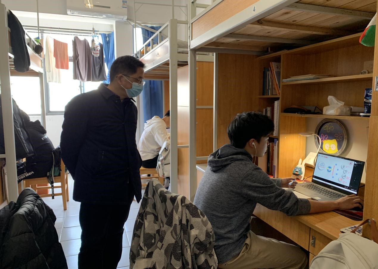 学院领导与走访宿舍学生进行亲切交流,尤为关注当前线上教学、校内生活及困难需求。走访过程中,对于大三、大四年级,着重关心学生的升学就业进展,鼓励其立足实际做好规划、持稳心态两手准备,提醒平衡好教学计划与备考应试之间的时间精力;对于大一、大二年级,询问了解同学们对疫后返校和环境变化的适应情况,叮嘱及时调适心理情绪,抵御外部环境的不利影响。此外,徐锡清书记提醒大家尽快转换状态,全身心投入新学期的学习生活,合理安排学习、科研计划,健康作息、劳逸结合。