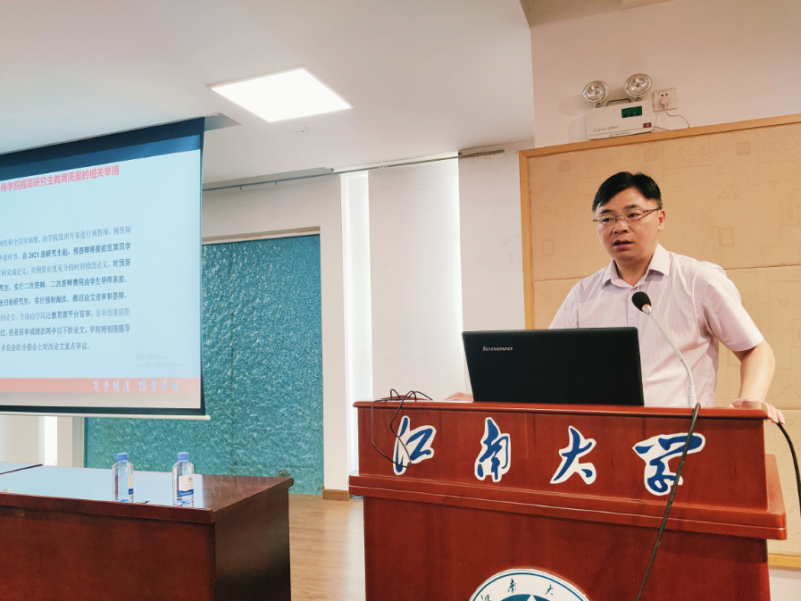 王雷聚焦“提高研究生教育质量的相关举措”“全日制硕士研究生论文答辩与学位申请的有关规定”“校级优秀硕士论文评选推荐办法”“新葡萄8883国际官网博士硕士学位论文抽检及结果处理办法”“研究生科学道德与学风建设”五个版块,为研究生同学详细介绍新葡萄官网、学涯规划等内容。他寄语新生,在研究生期间尽量广地涉猎学科基本知识,建立合理的知识结构,掌握独立研究的方法和技能,同时正确面对困境,用辩证的眼光去看待问题,做阳光健康的科研工作者。