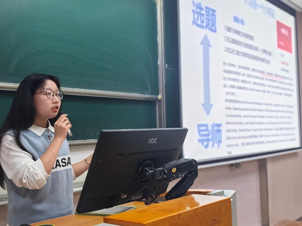 国家级大学生创新创业训练计划项目负责人马一柠结合自身丰富的项目经验,详细分析了创新项目和创业项目二者之间的差异,并着重强调了各阶段工作及注意事项。国家级大学生创新创业训练计划项目负责人孙锦阳提出在大创项目领域的“三胜诀”——思维胜、视野胜、素养胜,以及“三难咒“——选题难,落实难,细节难,并强调在项目进行过程中要将创新的想法与有创意的实践相结合。省级大学生创新创业训练计划项目负责人陈亭廷分别从课题的选择、队友的找寻与分工、项目撰写要求三个方面阐释,重点强调了在选题过程中要与导师加强联系沟通。经验分享干货满满,现场氛围融洽。