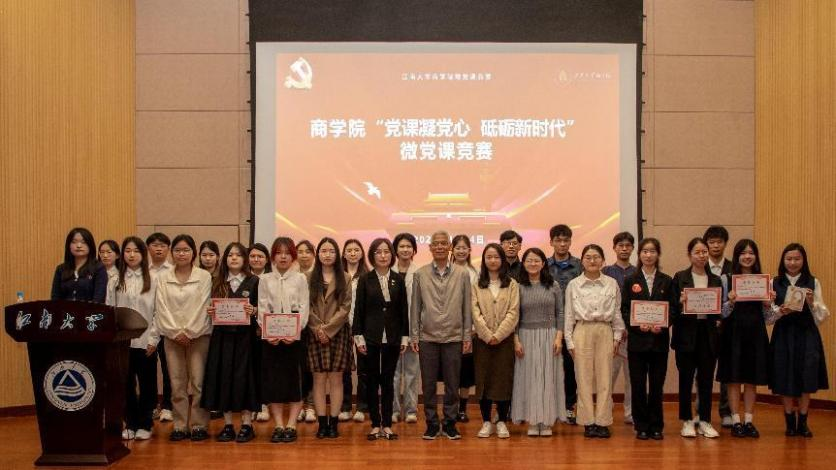 最后,冯群康宣读获奖名单。评委嘉宾为获奖同学依次颁奖。经过激烈的角逐和严格的评审,会计2002班王楠歌、金融2102班钟妙清、刘徐两组同学获得一等奖;国贸2301班刘张芸、国贸2104班李文斐等三组同学获得二等奖;工商2202班周紫萱、工商2301班魏文彬等五组同学获得三等奖;工商23硕陈敏、管工23硕陈梦等同学获得优秀奖。