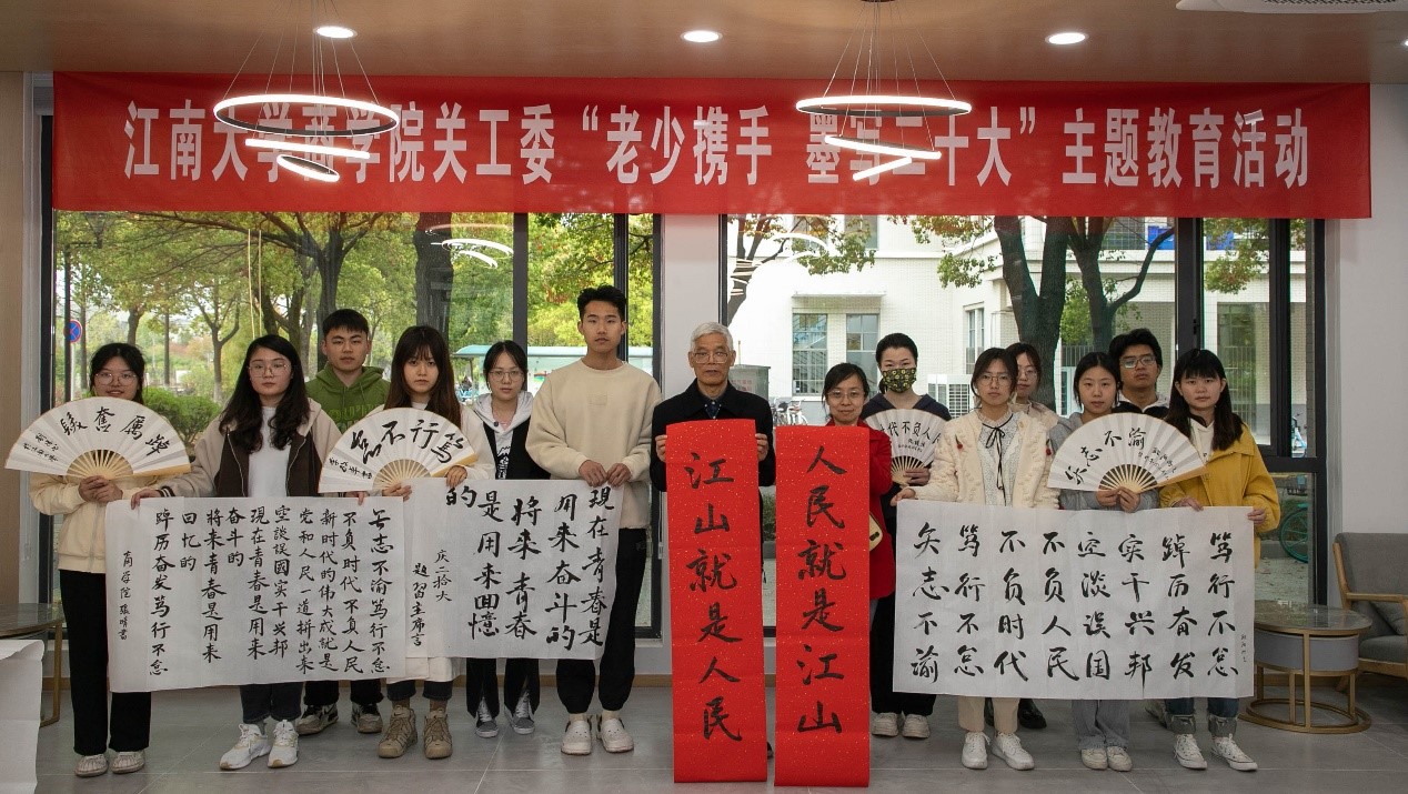 会后,唐红珍、葛其春、汪铿、邓慧慧受邀参加并指导学生党支部与特称团支部学习宣传贯彻党的二十大精神专题组织生活会,共学党的二十大精神。冯群康与学院书法爱好者在浩苑“一站式”学生社区开展“老少携手,墨写二十大”活动,学习并书写习近平总书记名言金句。